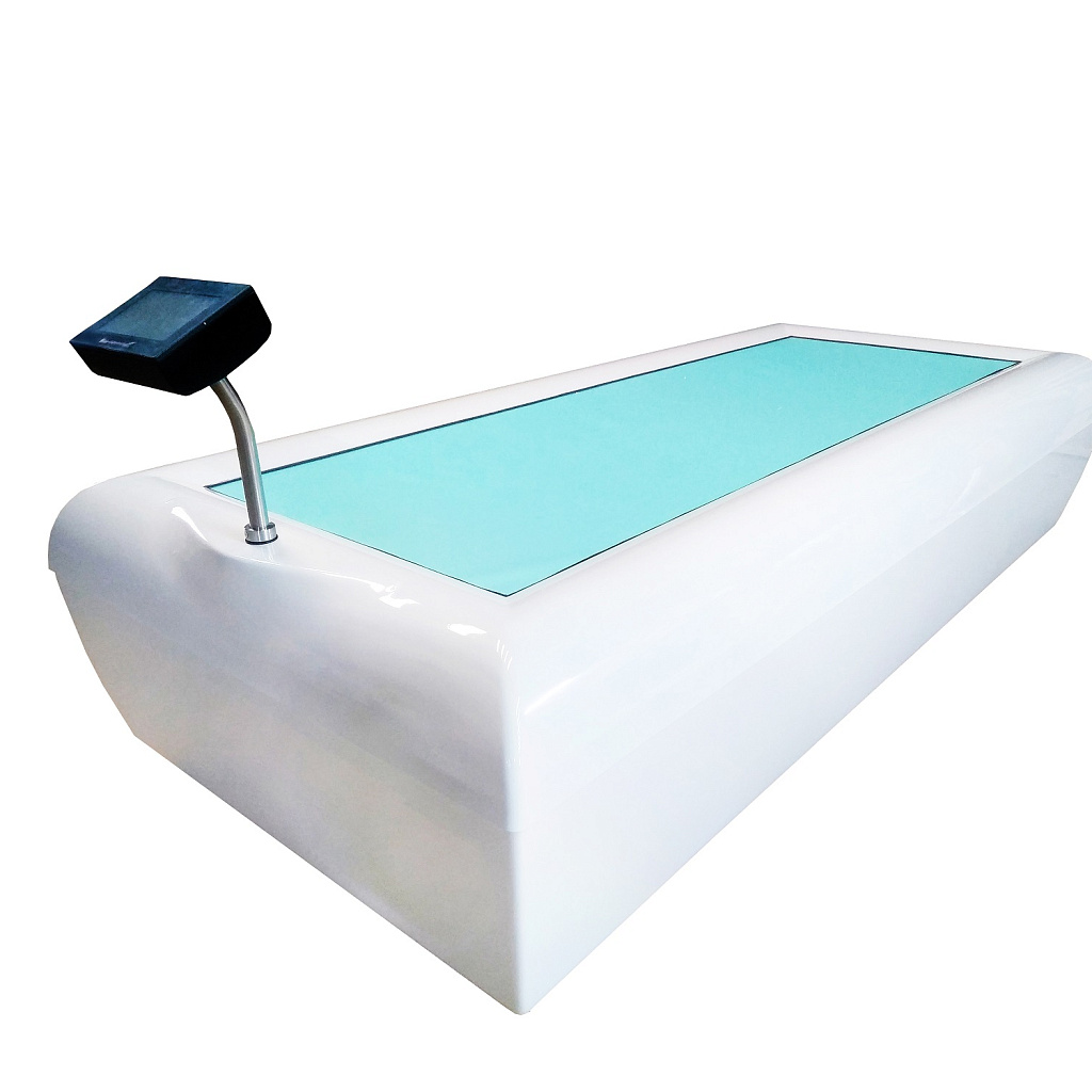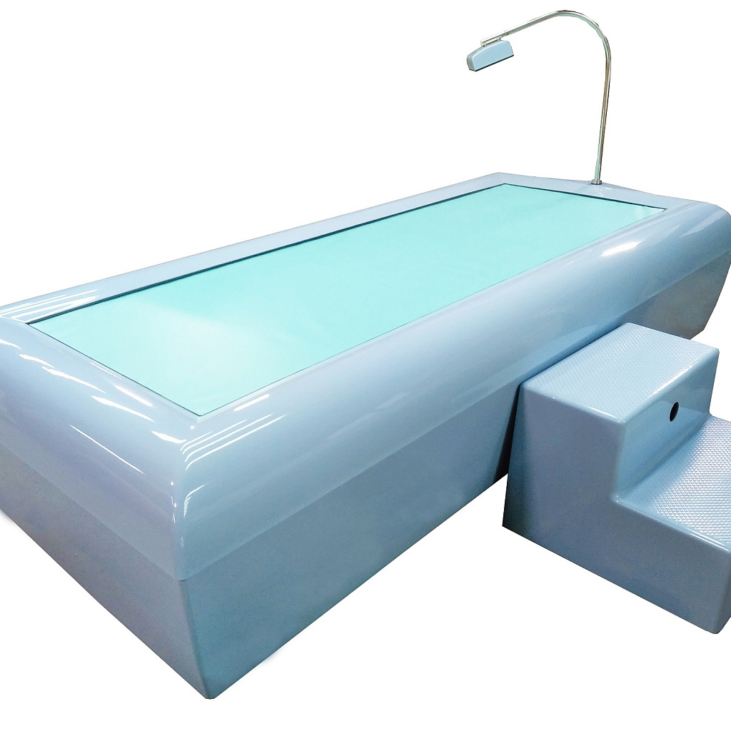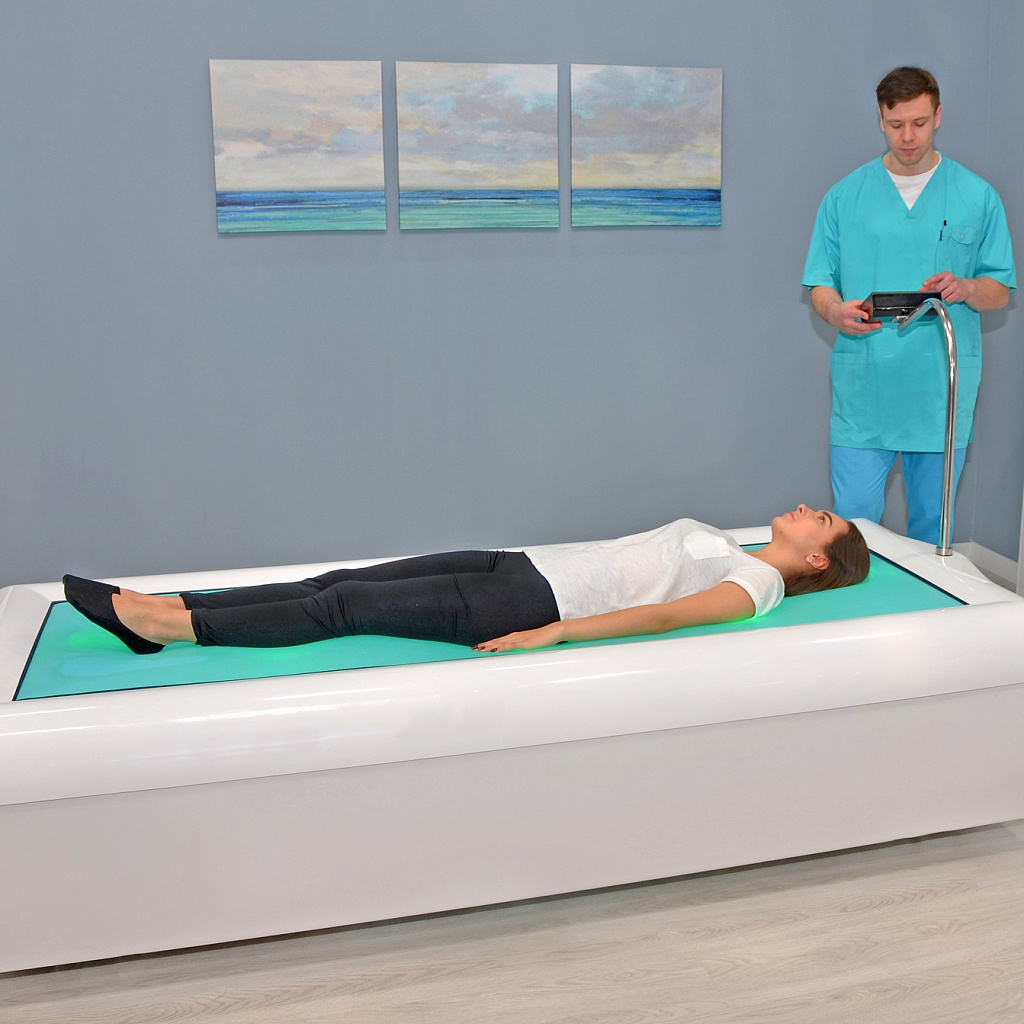 Медицинское изделие с регистрационным удостоверением Росздравнадзора № РЗН 2013/1319. Профессиональная гидромассажная кушетка российского производства с эластичной мембраной, под которой работают 24 гидрофорсунки. Пациент располагается на мембране в состоянии «сухой невесомости» и получает интенсивный гидромассаж без прямого контакта с водой. Система электронного индивидуального программирования позволяет создавать уникальные протоколы массажа с выбором зон, последовательности и времени воздействия. Подходит для оснащения SPA-центров, санаториев, медицинских центров, реабилитационных клиник, центров эстетической медицины и косметологии, кабинетов психоэмоциональной разгрузки.