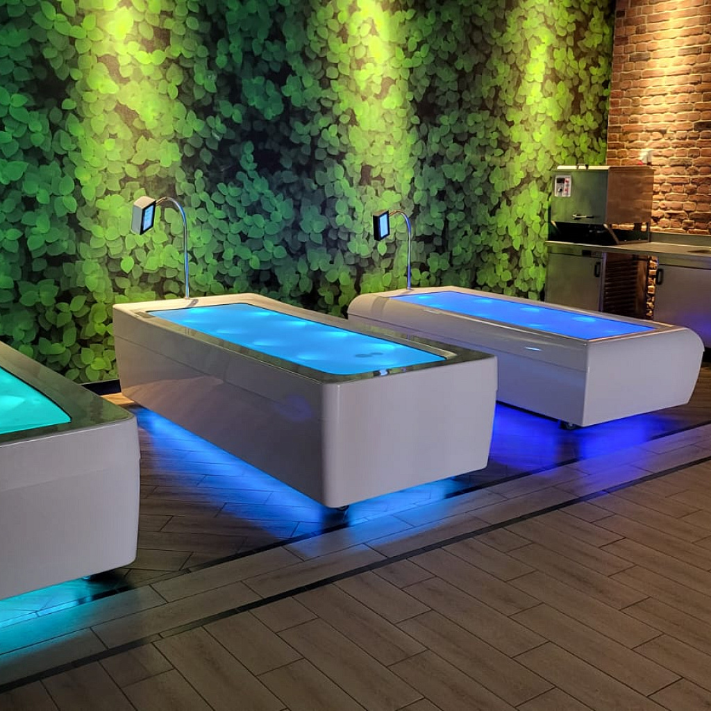 Светопрозрачная мембрана и подсветка дна создают цветотерапевтическое воздействие, усиливающее релаксацию.